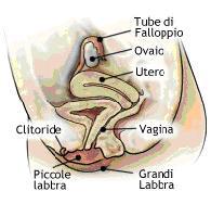 Nella figura sono indicate le parti che compongono l'apparato genitale femminile: