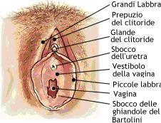 superiormente a livello del monte di Venere, e le piccole labbra, il clitoride e il vestibolo della vagina.